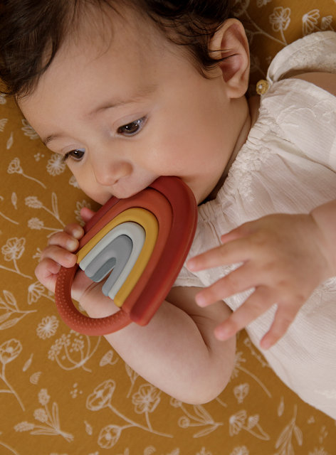 Beißringe helfen nicht nur in der schweren Zeit, in der die Zähnchen durchbrechen, sondern stimulieren dabei auch noch die motorische Wahrnehmung Deines Kindes.