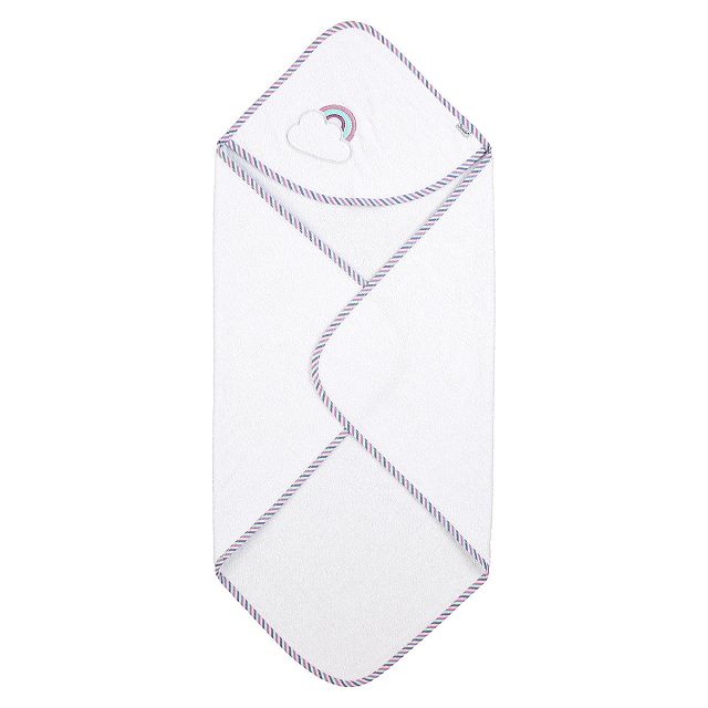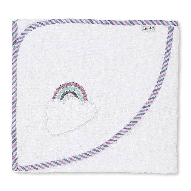 Die Kapuze ziert eine hübsche Applikation Wolke mit Regenbogen und sie schützt das Köpfchen zusätzlich.