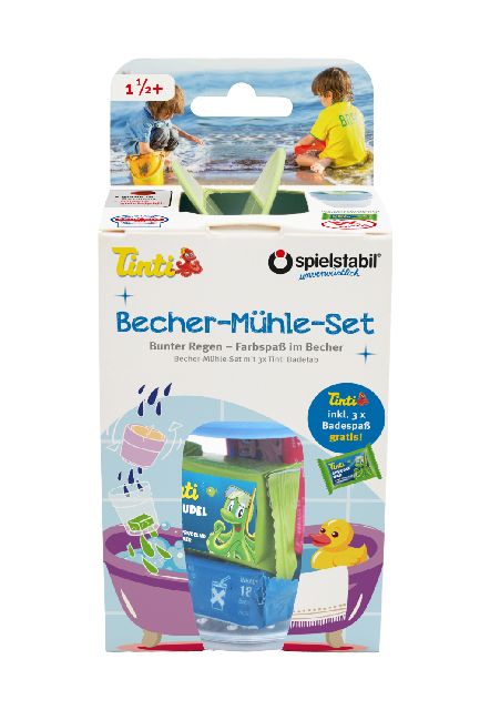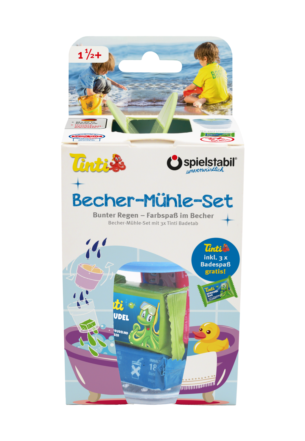 Das Spielstabil Becher-Mühle-Set verwandelt jedes Bad in ein sprudelndes Farbenspiel mit drehender Mühle und buntem Wasserregen.