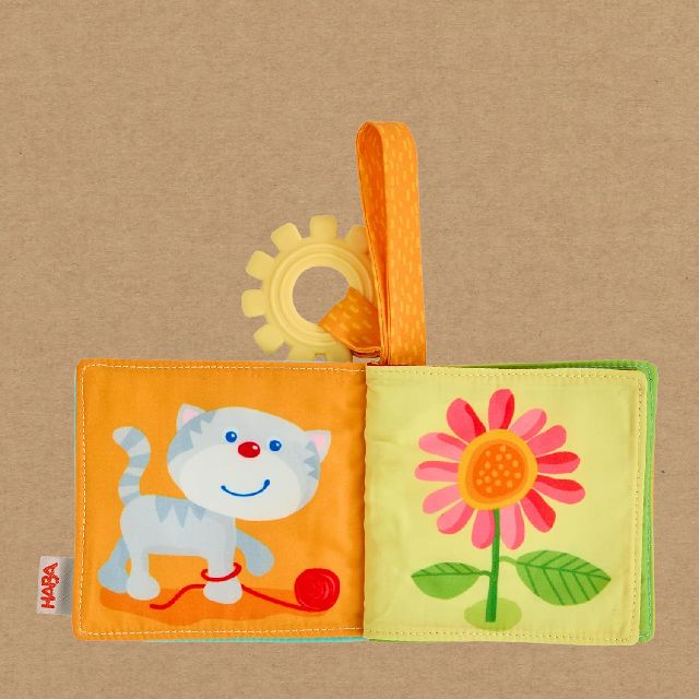 Auf den weichen, robusten Seiten des HABA Buggybuchs Erste Wörter warten lustige Gegenstände, niedliche Tierchen und akustische Effekte darauf, von Babys ausgiebig entdeckt und erkundet zu werden.