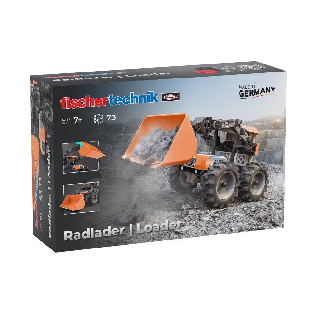 Der Fischertechnik Radlader ist das ideale Modell für alle Nachwuchsbauleiter, die gerne Materialien verladen und transportieren.