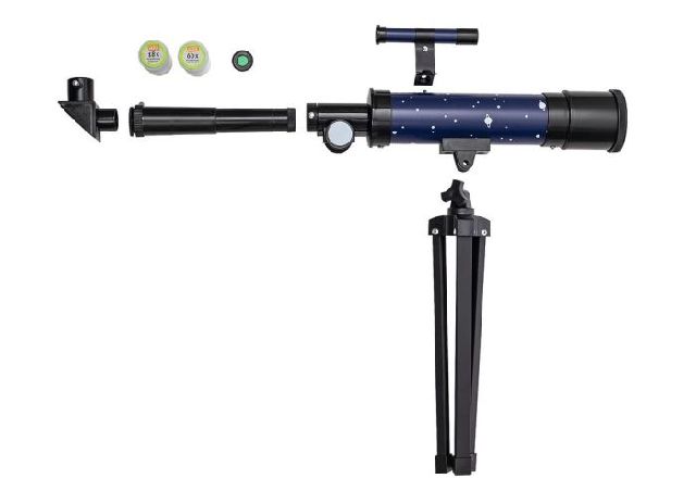 Das praktische Stativ ist leicht auf Terrasse, Balkon oder einer Wiese aufgestellt und die 27x- bis 90x-fache Vergrößerung lässt alle großen und kleinen Astronaut*innen das Weltall und die Weiten unseres Universums entdecken.