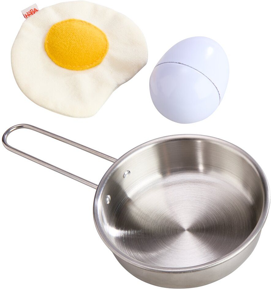 >>>>Spiegelei aus Stoff, Inklusive Metallei und Pfanne für authentisches Kochen