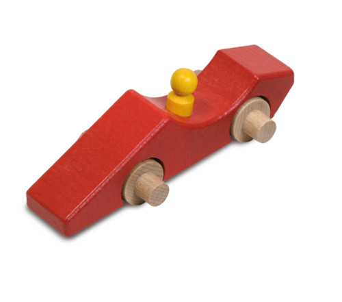 Je unterschiedlicher die Laufteile sind, die eine Multibahn mit ihren jeweils eigenen „Gangarten“ hinablaufen, desto spannender ist das Spiel mit der Holzkugelbahn. Der rote Flitzer mit den Stahlachsen gehört einfach zur Multibahn mit dazu. Verwegen und spritzig, ohne anzuhalten aber auch nicht halsbrecherisch schnell fährt er zuverlässig auf stetig fallender Strecke. Das gelbe Holzmännchen hat seinen „Sprinter“ fest im Griff.
