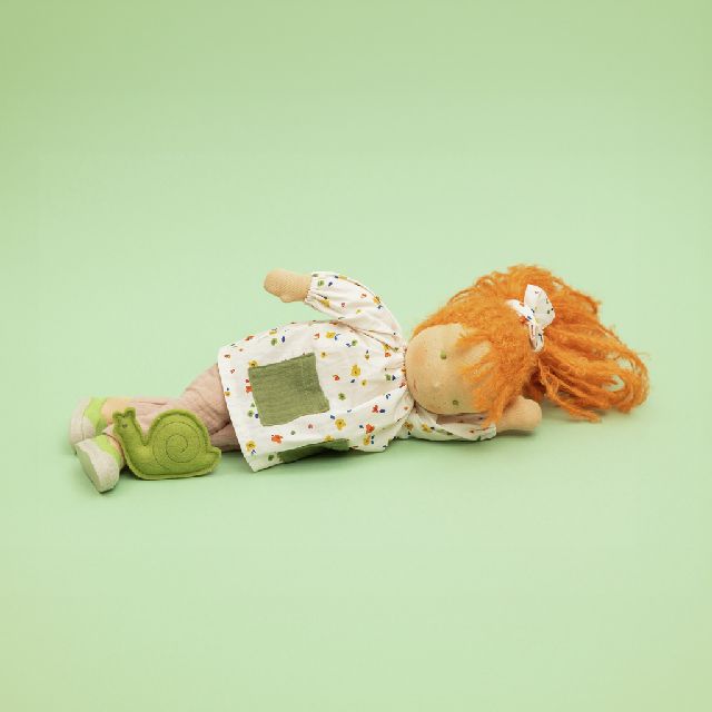 Jedes Puppenkind ist liebevoll aus organischen Materialien wie Biobaumwolle und Bio-Schafwolle von Hand gefertigt.