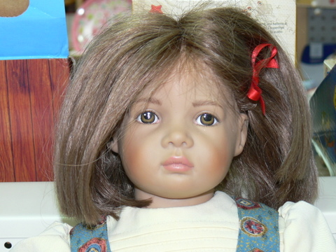 Ihre braunen Augen sind handgemalt und die braunen Haare lassen sich auch von Kindern gerne frisieren.