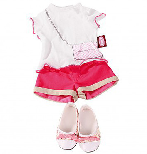 Hannah hat ihren ersten großen Ballettauftritt. Dazu bekam sie natürlich ein Tutu. Ihr Ballettanzug besteht aus einer Wickeljacke, einem Body, Strumpfhosen, Stulpen und selbstverständlich Ballerinas und das Tutu. Im Haar trägt sie ihren Lieblingszopfhalter, eine große Blume aus Pailletten. Um nach dem Auftritt noch etwas im Park relaxen zu können hat sie gleich ein schickes Sommer-Outfit dabei.