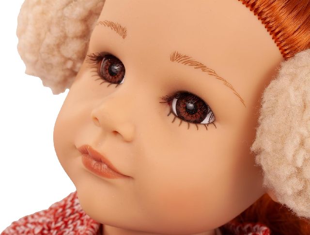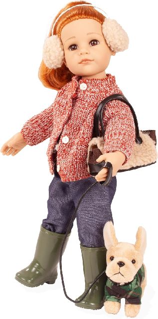 Hannah and her dog begeistert mit ihrem natürlichen, charmanten Look: Ihr langes rotes Haar lädt Kinder zum Waschen und Frisieren ein, während ihr liebevoll gestaltetes Gesicht und ihr gemütliches Winteroutfit – bestehend aus einer melierten Strickjacke, Jeans, Gummistiefeln und flauschigen Ohrenwärmern – beim Spielen die Kreativität anregen.
