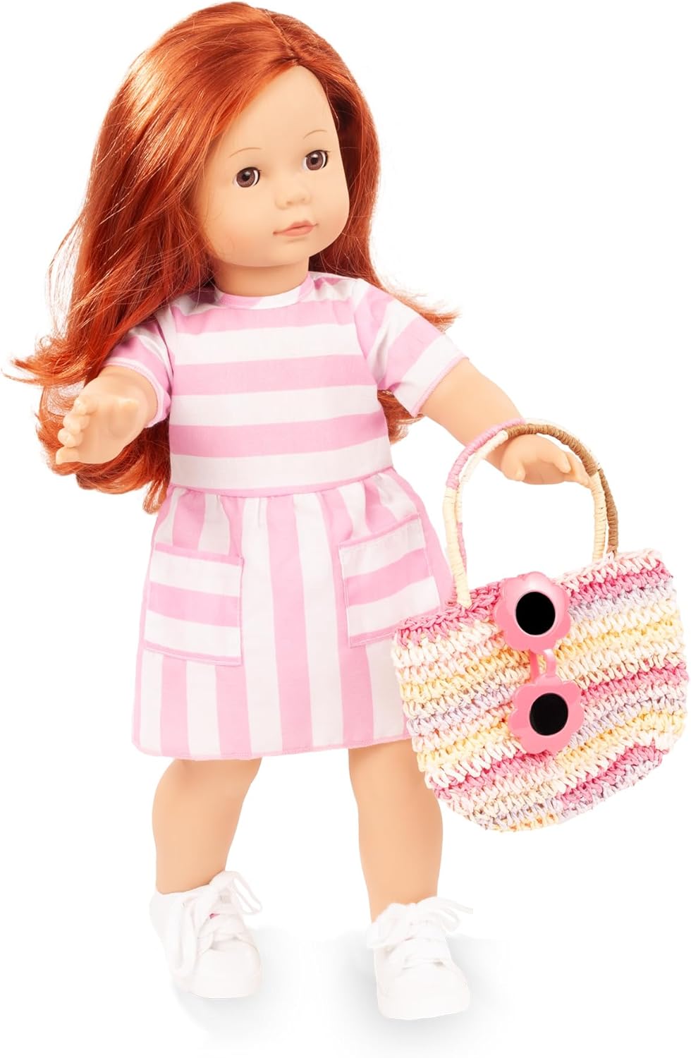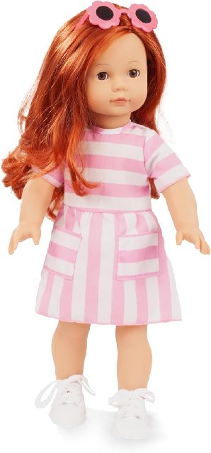 Julia hat einen weichen Stoffkörper, der mit Watte gefüllt ist, dabei jedoch fest genug bleibt, um sicher stehen zu können. Ihre Arme und Beine bestehen aus hochwertigem Vinyl – langlebig, pflegeleicht und angenehm anzufassen. Zudem ist sie waschmaschinen- und trocknergeeignet, sodass sie stets frisch und sauber bleibt. Das strapazierfähige Haar mit natürlichem Aussehen ist fest eingenäht und besonders leicht zu frisieren.