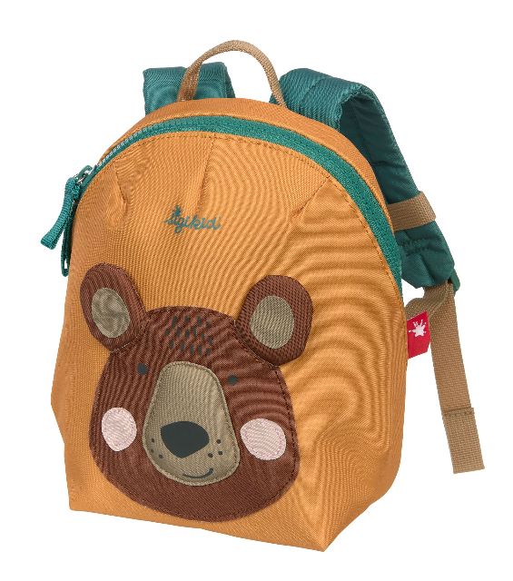Kompakter Mini-Rucksack Bär für kleine Kita-Einsteiger ab ca. 2 Jahren, kindlich farbenfroh und mit lustig abstehenden Bärenohren appliziert.