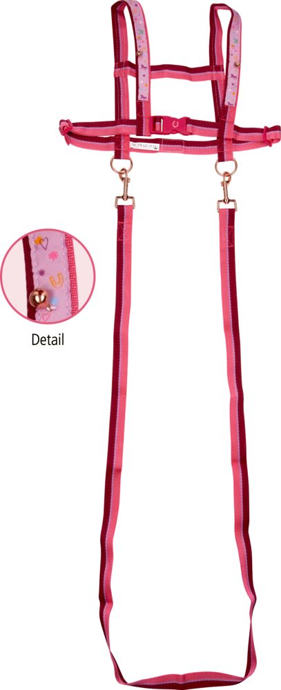 Das verstellbare Pferdegeschirr ist mit einem Glöckchen ausgestattet, das sanft klingelt und dem Rollenspiel eine authentische Note verleiht.
