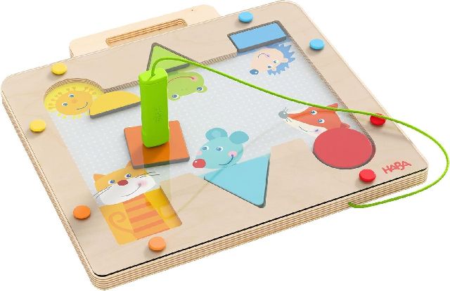 Das Besondere: Die Zuordnung kann entweder nach passender Farbe oder nach passender Form erfolgen – denn es ist genug freie Fläche vorhanden, um die magnetischen Formen um 360° in jede beliebige Richtung zu drehen.