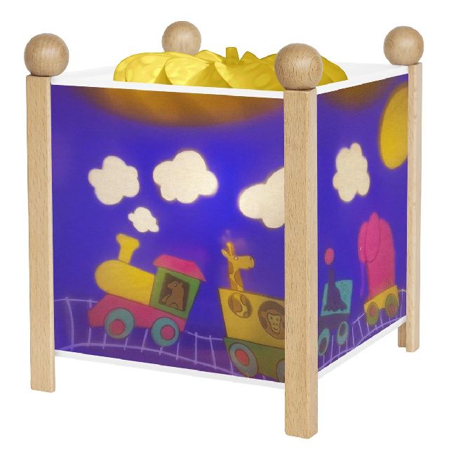 Die Eisenbahn schwebt dabei durch´s Zimmer und zaubert ein warmes Licht, das herrlich zum Kuscheln am Abend einlädt und in keinem Kinderzimmer fehlen darf.