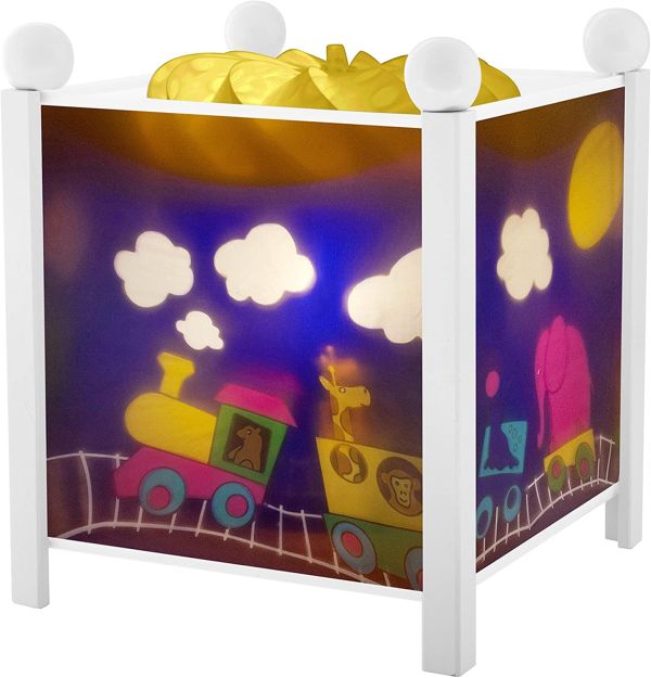 Die Eisenbahn schwebt dabei durch´s Zimmer und zaubert ein warmes Licht, das herrlich zum Kuscheln am Abend einlädt und in keinem Kinderzimmer fehlen darf.